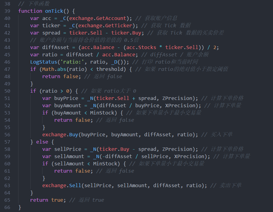 注文取引ロジックは明確で、すべてのコメントがコードに書き込まれています。画像をクリックすると拡大できます。