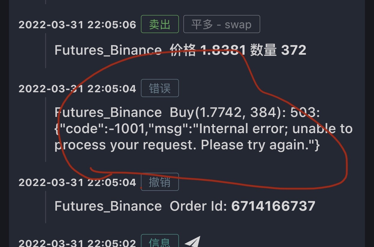 图上的报错,是交易所API接口异常的问题。显示是内部错误。可能是当时接口异常不能工作了。重试就可以。