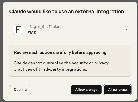 配置 FMZ MCP 成功之后,在使用时会显示: