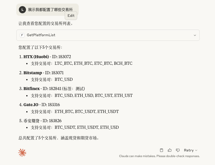现在让我们展示一下 FMZ MCP 服务 + Claude 的创新使用体验: