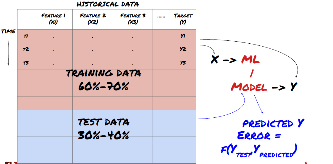 我们将要创建的特征必须具有一些预测能力(X),我们想要预测目标变量(Y),并使用历史数据来训练可以预测Y尽可能接近实际值的ML模型。最后,我们使用此模型对Y未知的新数据进行预测。这指引我们来到了第一步: