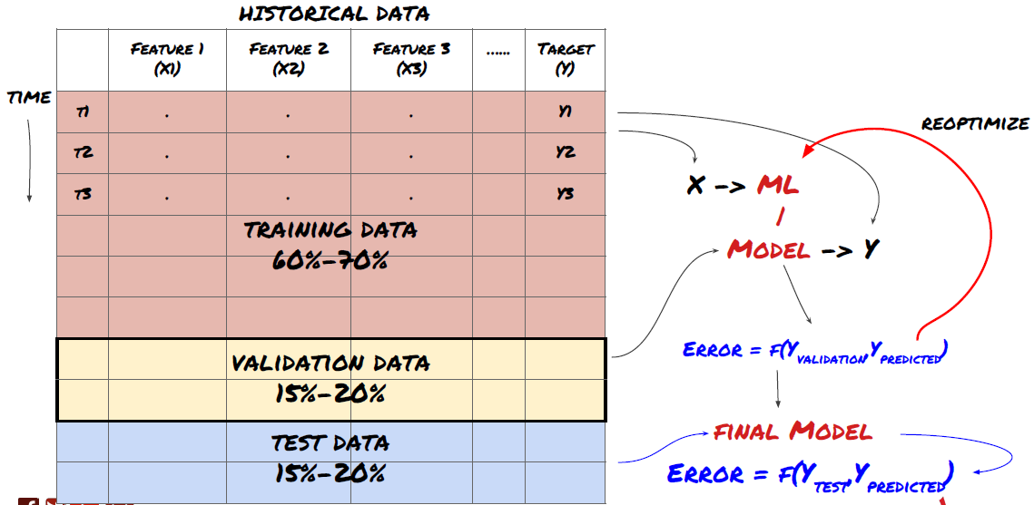 由于训练数据用于评估模型参数,因此你的模型可能会过度拟合这些训练的数据,并且训练数据会误导模型性能。如果你没有保留任何单独的测试数据并使用所有数据进行训练,你将不知道你的模型对新的看不见的数据执行得有多好或多坏。这是训练有素的ML模型在实时数据上失败的主要原因之一:人们训练所有可用数据并因训练数据指标而兴奋,但该模型无法对未经过训练的实时数据做出任何有意义的预测。