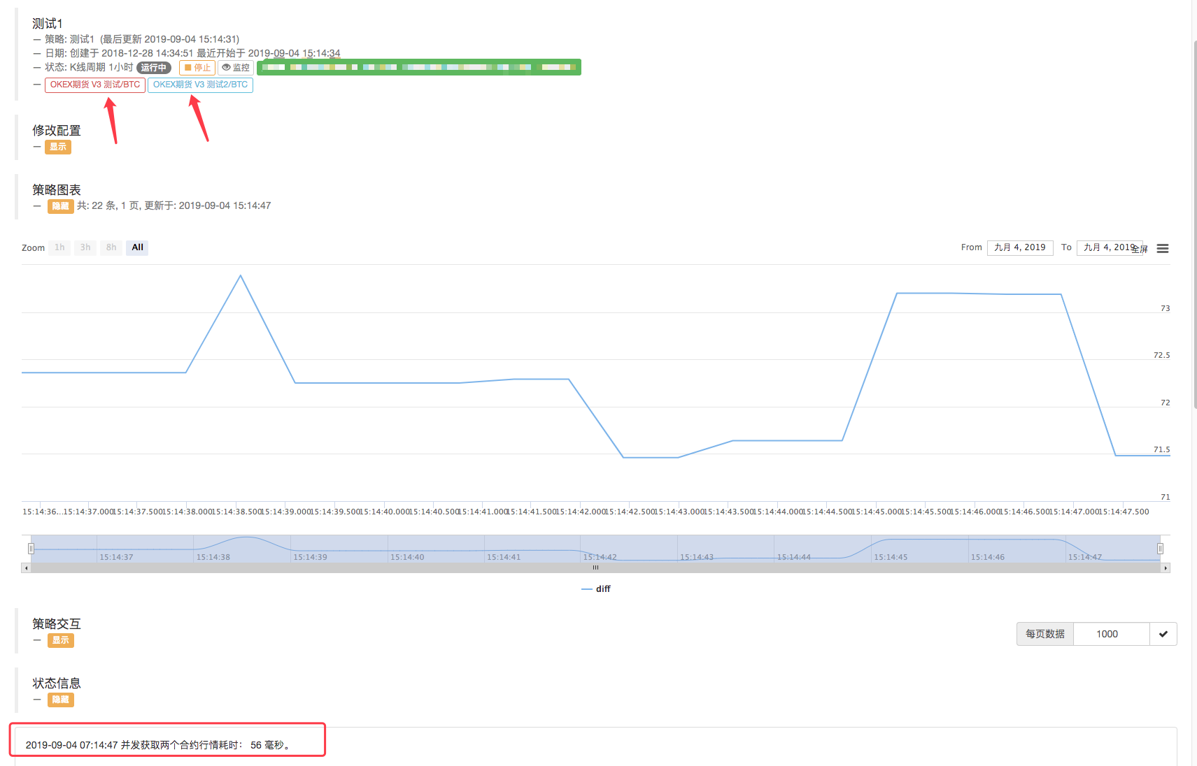 LogStatus(_D(), "并发获取两个合约行情耗时:", endTime - beginTime, "毫秒。") // 显示在状态栏上时间,以便知道程序在执行。