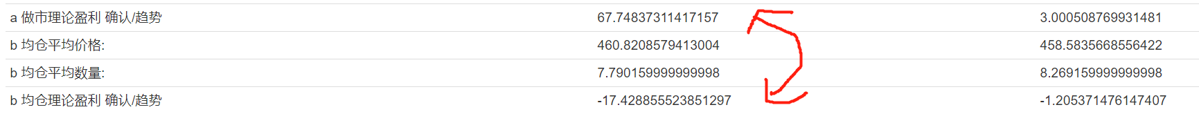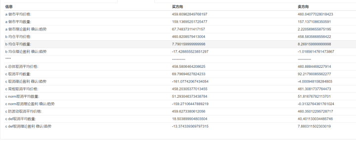 当前落袋的收益,做市造成的是67.4,均仓造成的是-17.4,即现在的理论盈利为50