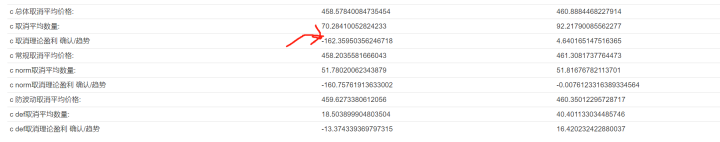 但是,古尔丹,代价是什么呢? 以我一个账户举例: 取消单导致的盈利理论上来说是落袋的,取消单导致的损失理论上来说是踏空的(因为取消了的成交信息不会体现在账户里,但是如果不取消这单导致成交会在账户中体现。这个很容易理解对吧)所以我们记录取消的订单的价格和数量,保留其出现在后续K线范围内的部分。这部分和当前价格的差价,就可以简单看作取消单导致的盈利/踏空。 即,计算收益(踏空)的算式为: