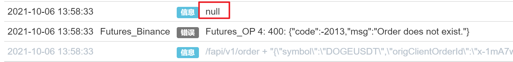 Ketika Binance dan exchange.IO mengalami kesalahan, kode kesalahan dapat ditampilkan di log, tetapi tidak dapat diperoleh dalam kode, dan data yang dikembalikan yang diperoleh adalah nol