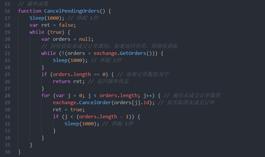 注文取引ロジックは明確で、すべてのコメントがコードに書き込まれています。画像をクリックすると拡大できます。
