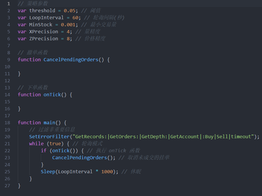 戦略フレームワーク全体は、メイン関数、onTick 注文関数、CancelPendingOrders 関数、および必要なパラメータで構成されており、実は非常にシンプルです。