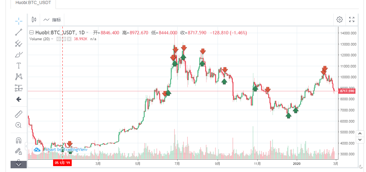 高点> btc 10000 || MA(10)MA(30)则买入;