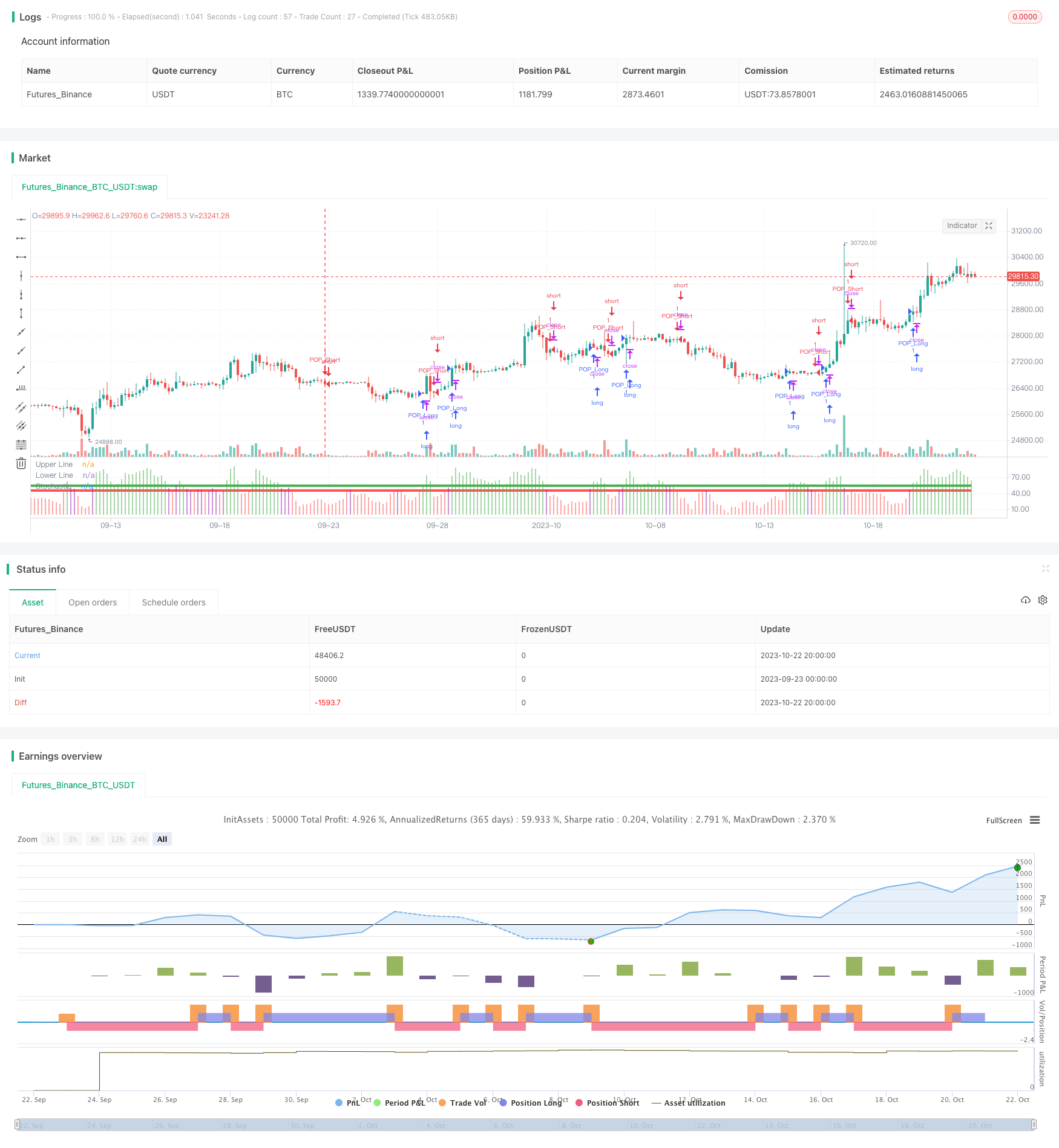 综合 Stochastic oscillator 和 ADX 的判断,当同时满足以下两个条件时,策略会产生买入/卖出信号: