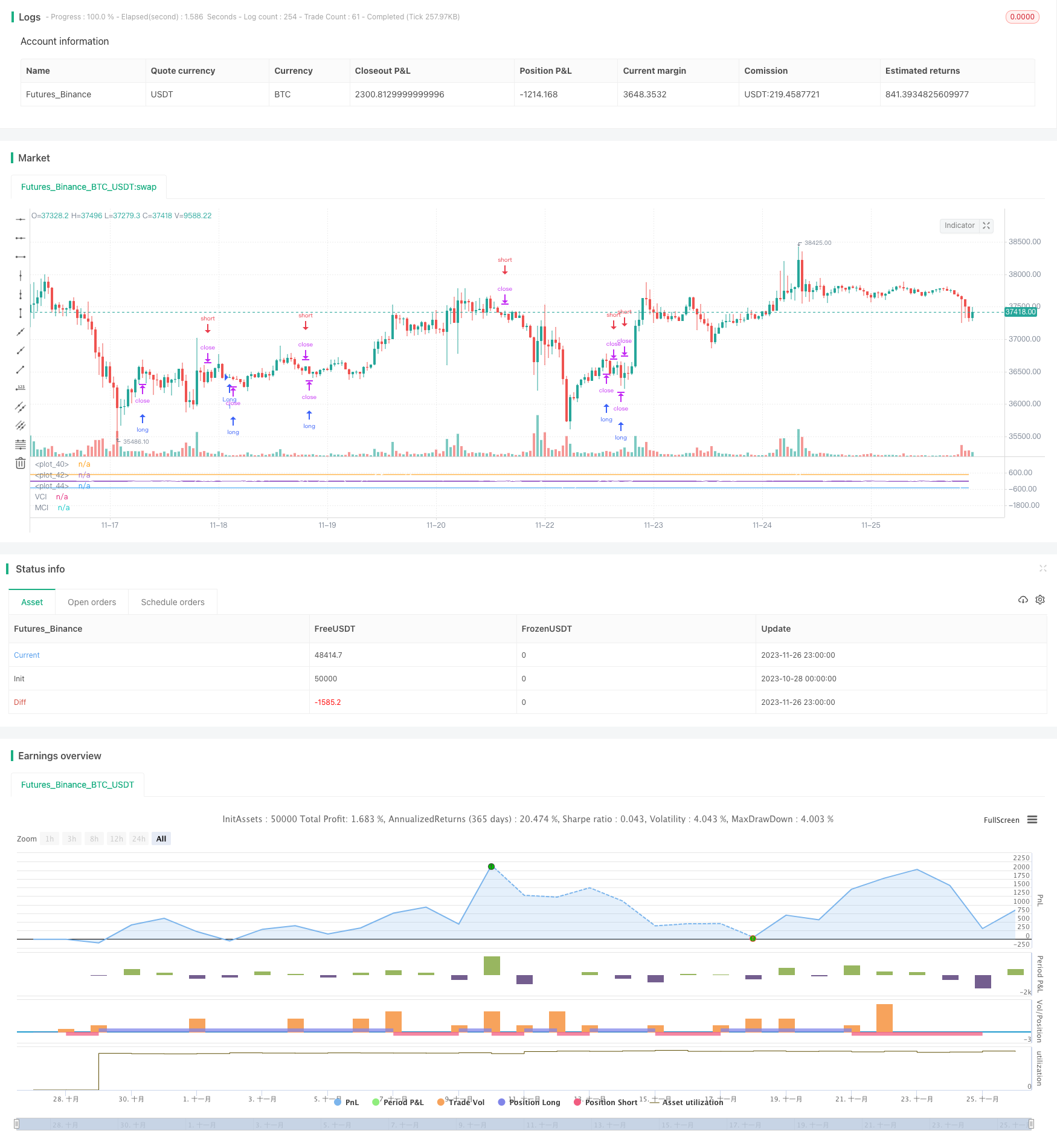 该策略通过结合经典技术指标CCI和自主研发的VCI、MCI双指数形成交易信号,属于典型的量化交易策略。其通过识别Volume和Price的变化趋势,判断当前行情主要交易方向和力度,形成交易信号。可以广泛应用于数字货币、外汇以及股票等金融工具。