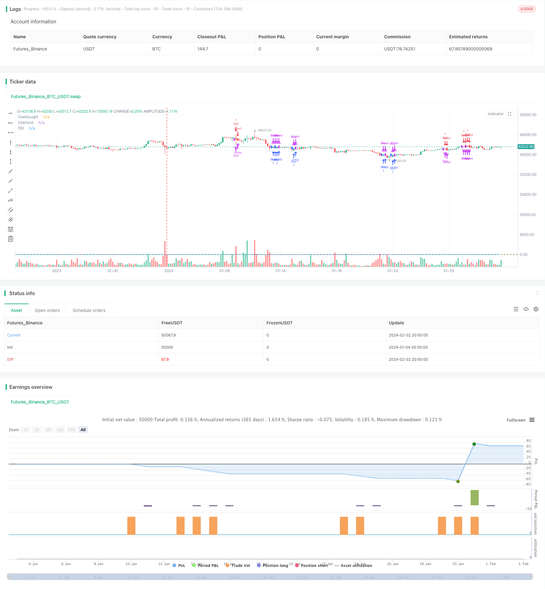 针对上述风险,可以通过优化RSI参数,调整止损幅度,适当放宽目标利润要求来解决。
