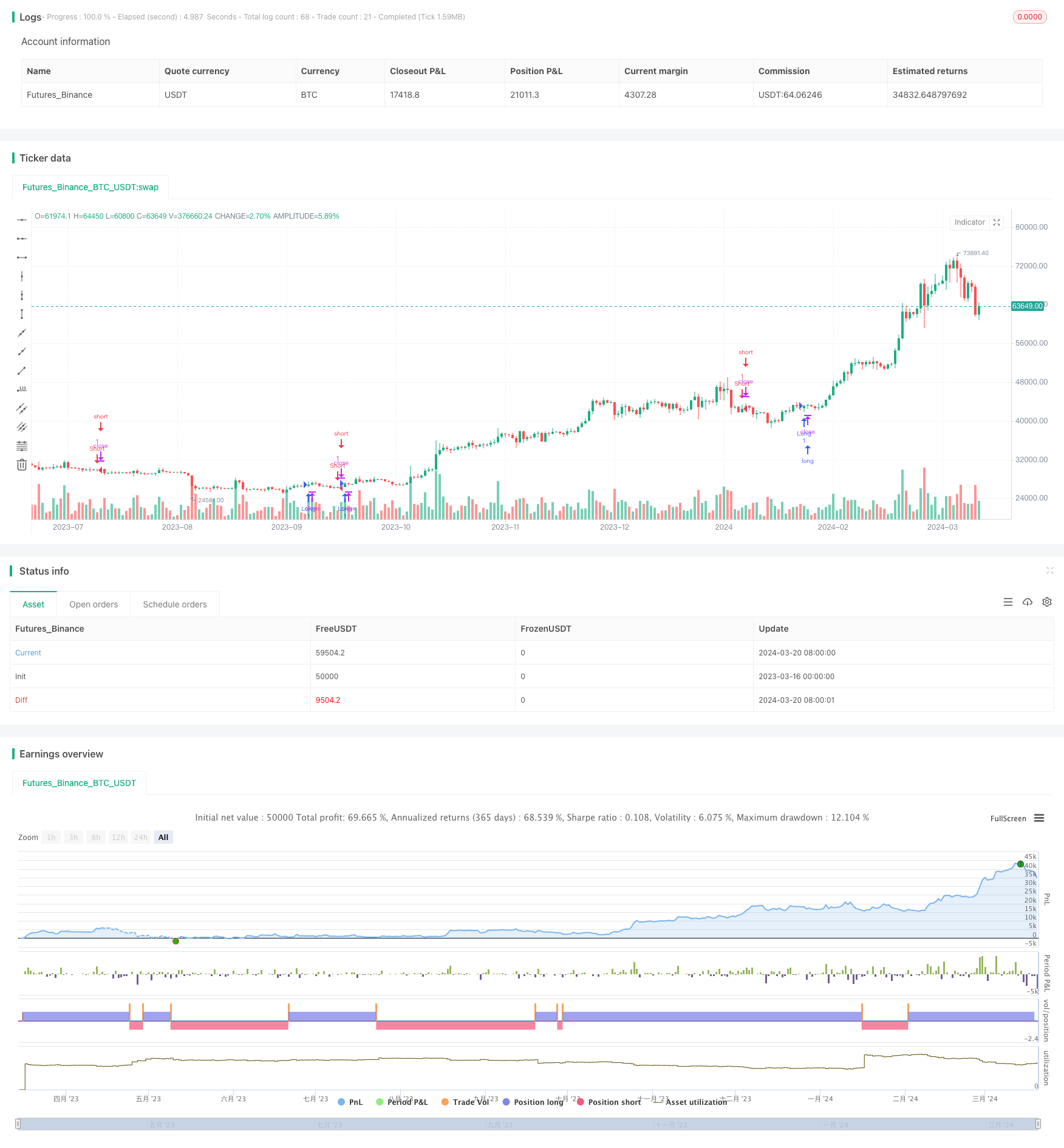趋势确认: 策略通过综合考虑均线交叉信号和多时间周期DMI指标来确认趋势。当均线交叉信号与DMI指标的趋势方向一致时,策略会产生相应的交易信号。例如,当短期EMA上穿长期EMA,并且多个时间周期的DMI指标都显示看涨趋势时,策略会产生做多信号。