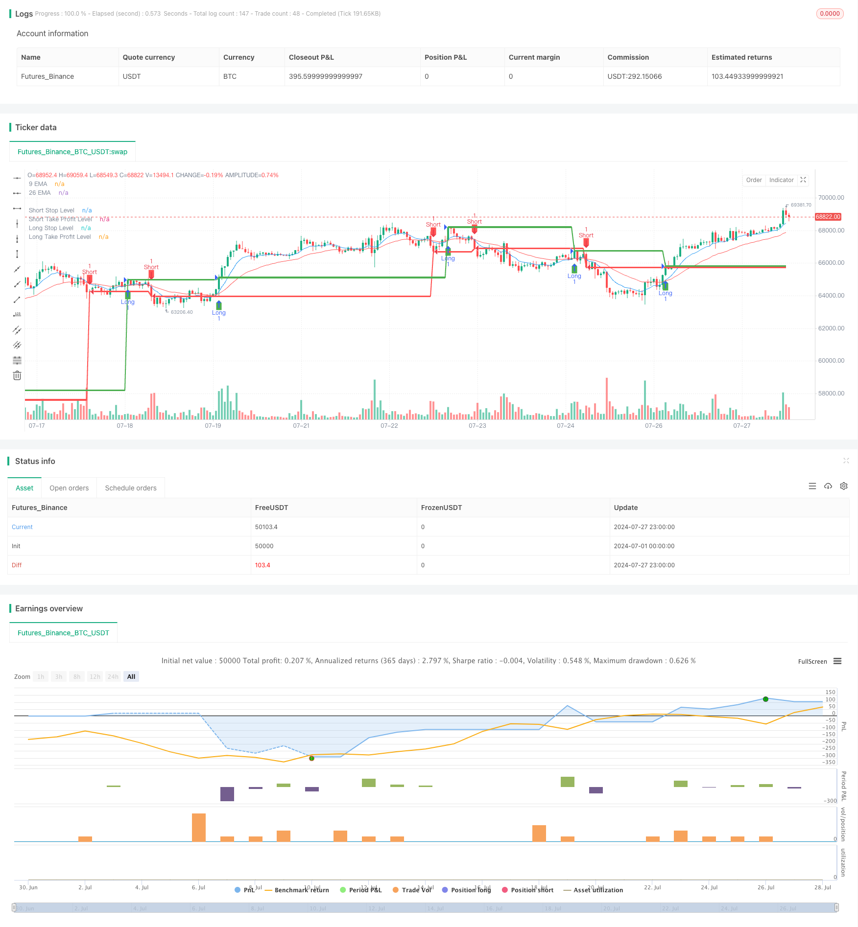 这个高级EMA交叉策略是一个自适应交易系统,利用指数移动平均线(EMA)的交叉来生成交易信号。该策略结合了9周期和26周期的EMA,在它们交叉时触发买入和卖出信号。策略的独特之处在于它引入了固定的止损和获利目标,以管理风险和锁定利润。此外,该策略还包含警报功能,可以在关键时刻通知交易者。