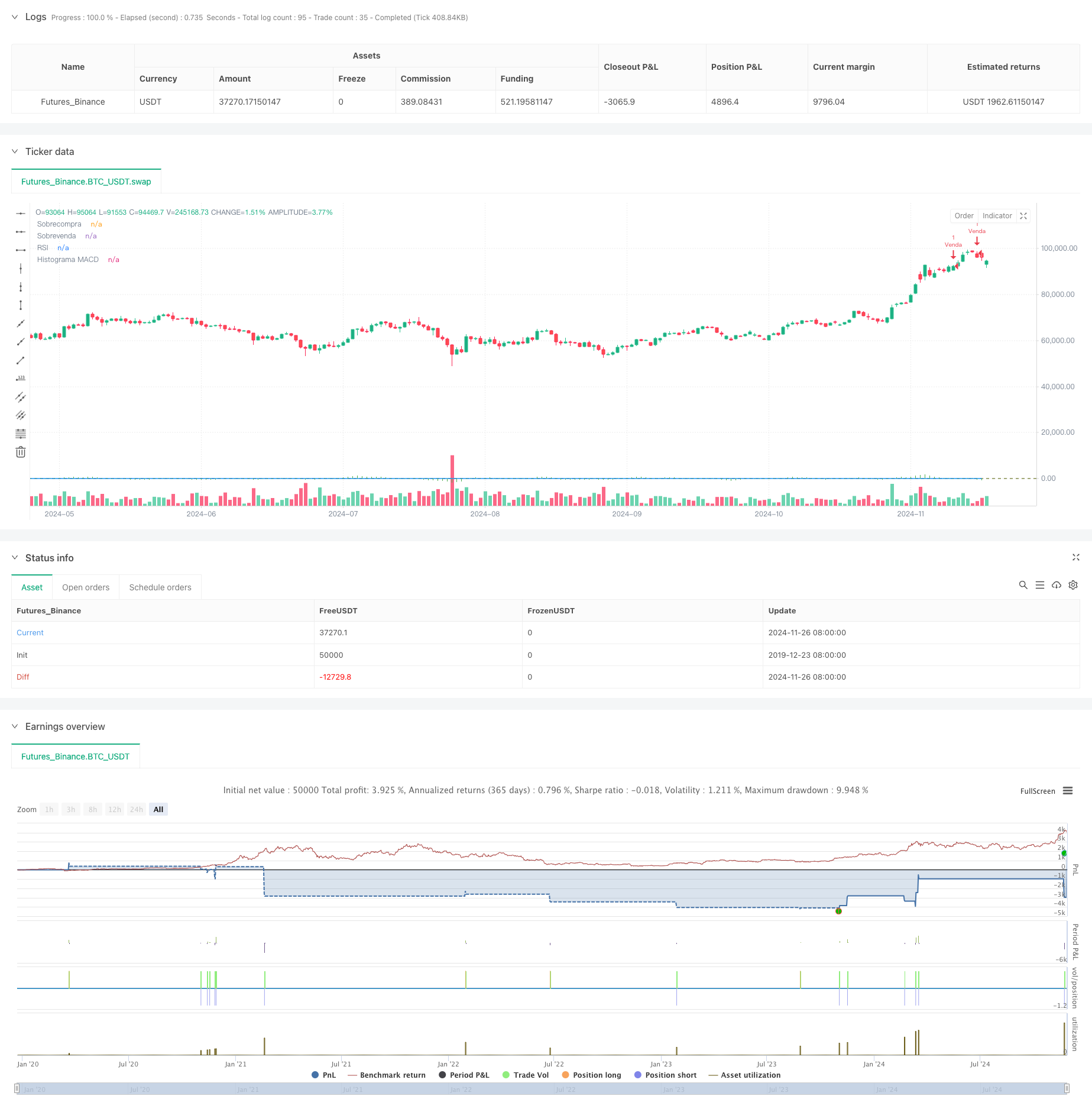 该策略是一个基于技术分析指标的交易系统,结合了RSI(相对强弱指数)和MACD(移动平均线趋同背离)双重信号确认机制,通过在超买超卖区间寻找交易机会,并采用动态止盈止损来管理风险。策略设计主要针对短线交易,适用于快速市场环境下的交易机会捕捉。