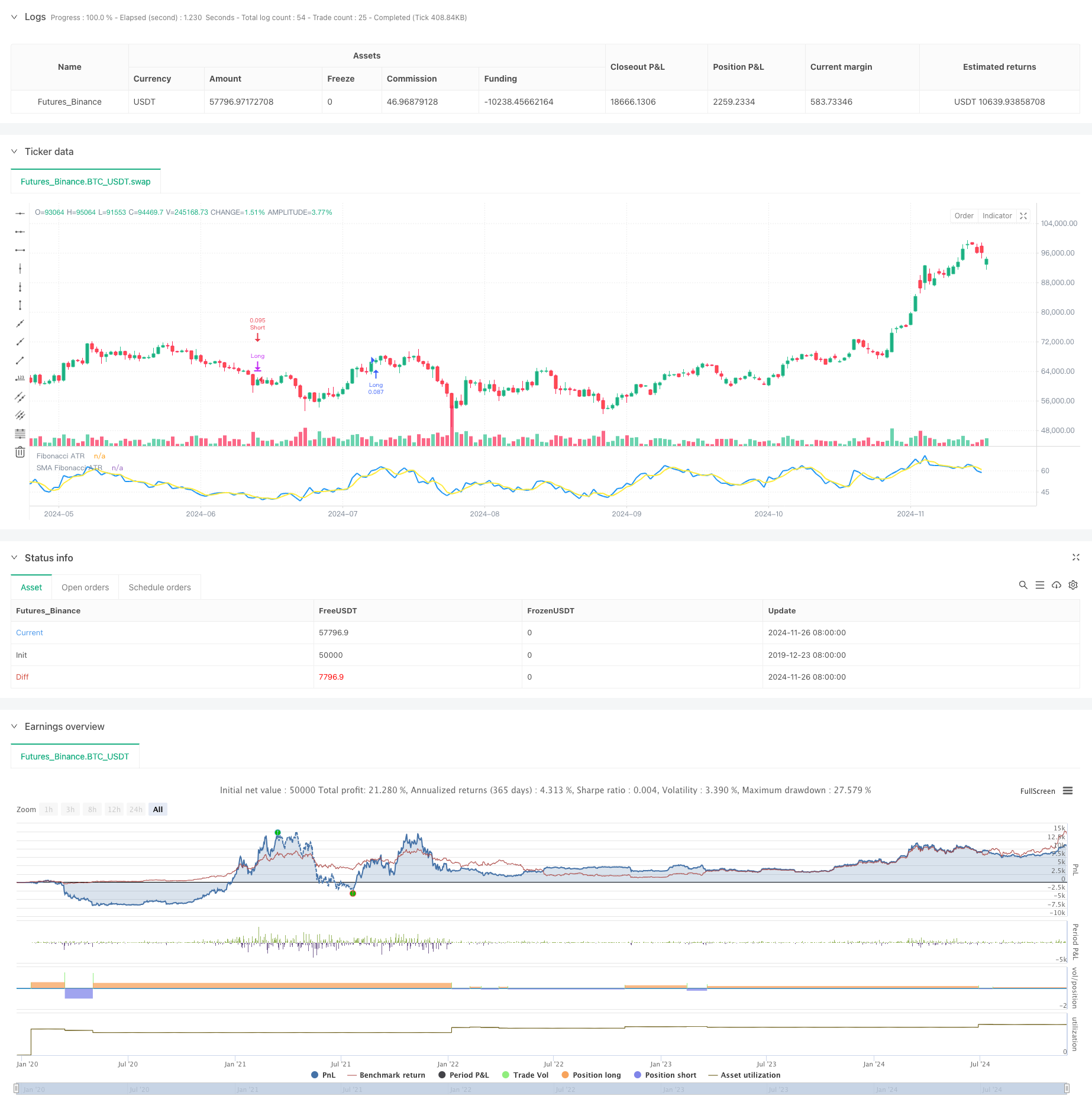 本策略是一个基于ATR和Fibonacci数列加权的高级趋势跟踪系统。它通过将多个时间周期的波动率分析与Fibonacci加权平均相结合,构建了一个响应灵敏、适应性强的交易模型。该策略的核心在于通过动态权重分配,更好地捕捉市场趋势,并利用ATR实现精准的获利了结。
