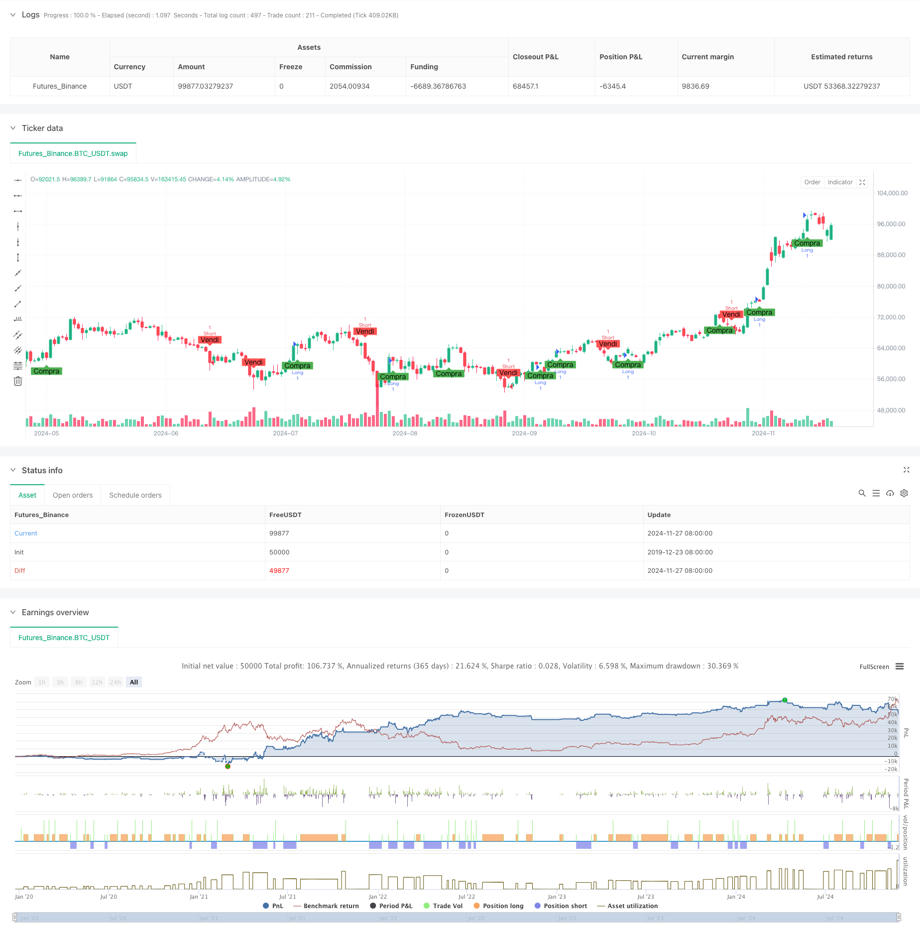 该策略是一个基于价格波动的多重趋势追踪系统,通过分析连续三个交易周期的最高点和最低点变化来识别市场趋势。策略采用动态止损和获利方式,在保护资金的同时追求稳定收益。这种方法特别适合在趋势明显的市场环境中应用,能够有效捕捉中长期的价格走势。